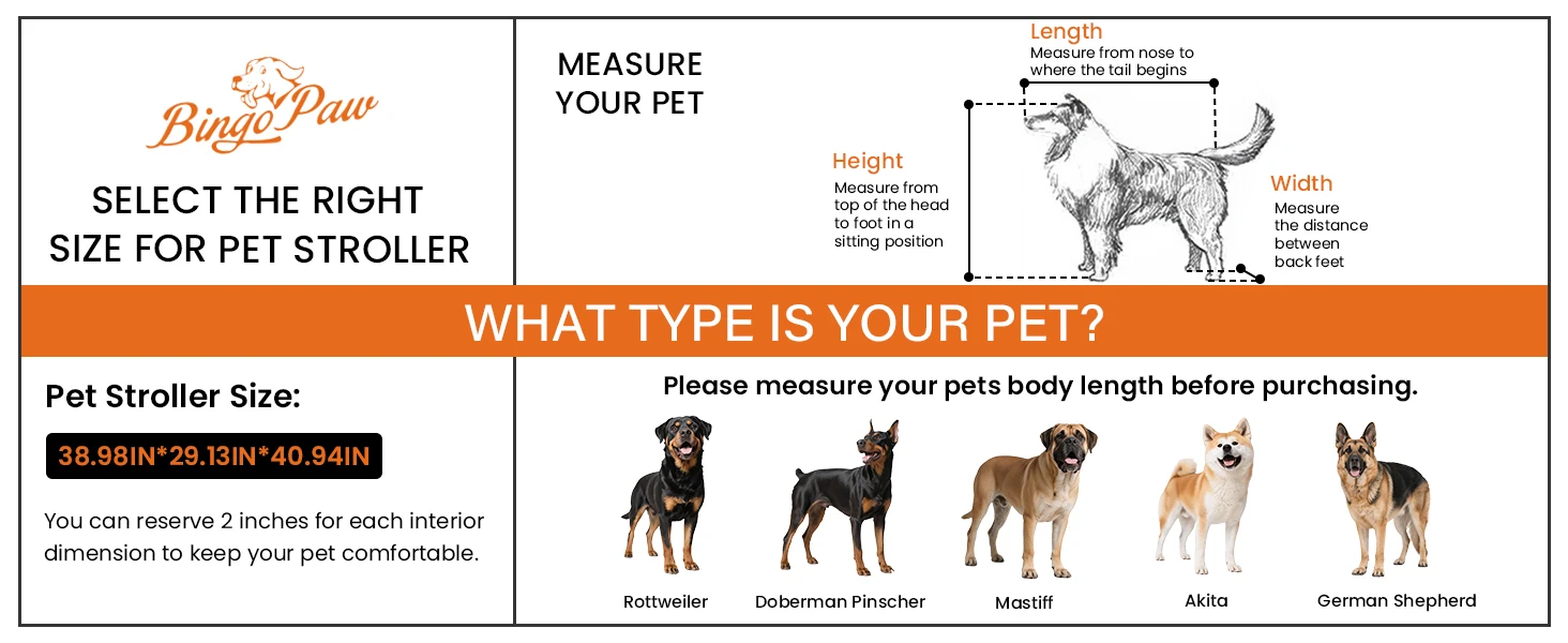 Convenient Dog Stroller : The zippered rear opening convenient for pets to go inside while they come out from the front openings, spacious interior allows dog stay comfortably and move easily, the handle is covered with sponge foam to make it comfortable to grip and push, can be adjusted to 200°as per your stature