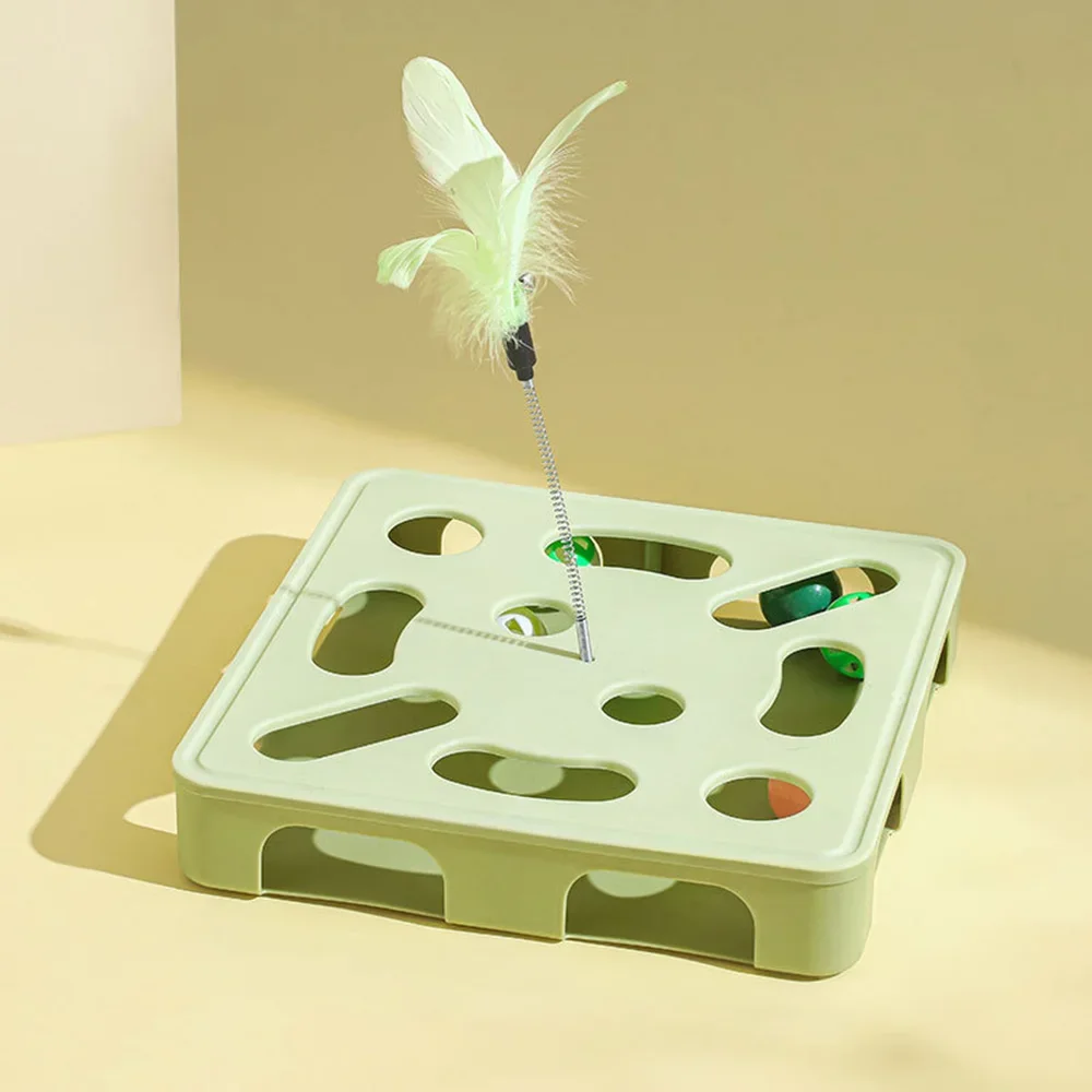 Interactive Cat Teasing Stick: Equipped with a cat teasing stick, this toy encourages interactive play, enhancing the bond between you and your feline friend.